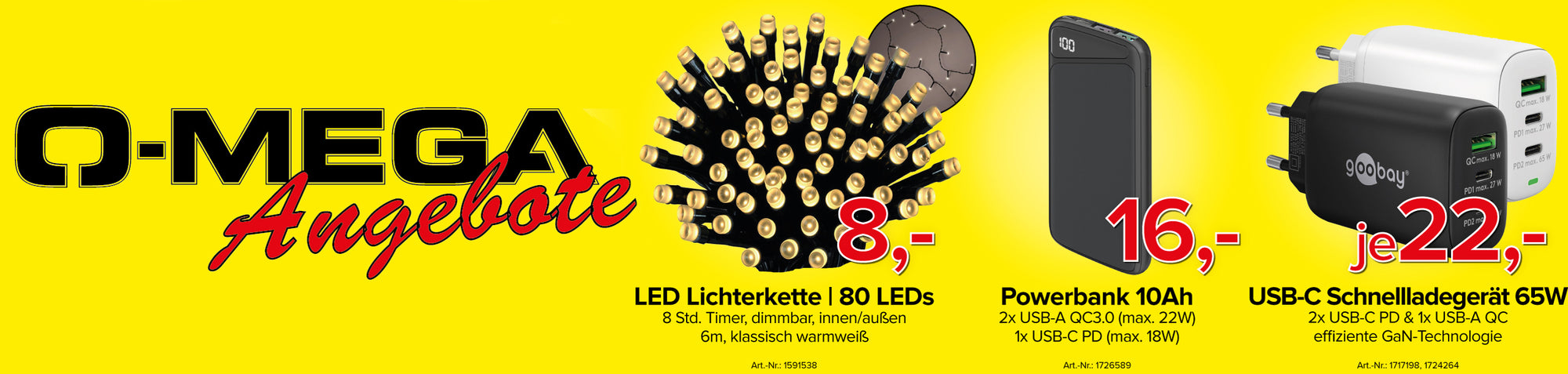 USB-C™ PD GaN Multiport-Schnellladegerät (65 W) schwarz 2x USB-C™-Anschlüsse (Power Delivery) und 1x USB-A-Anschluss (Quick Charge) Ein Ladeg...