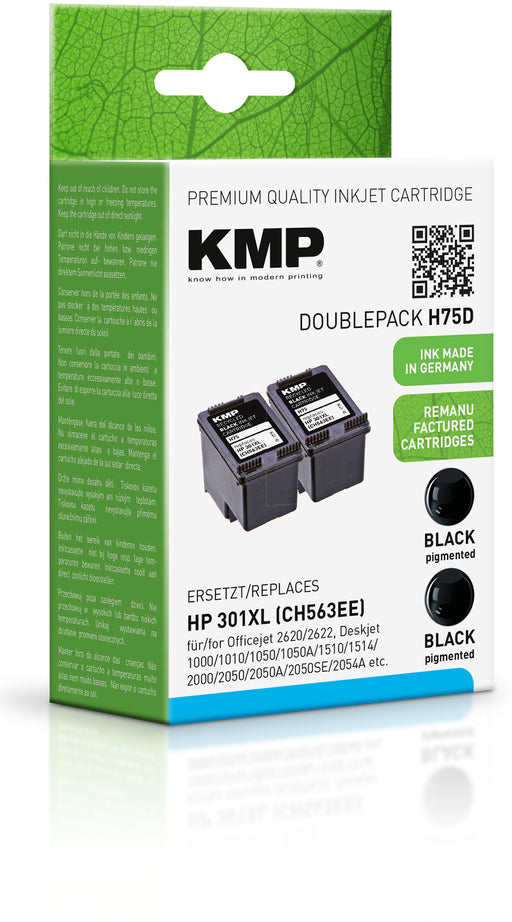Doublepack H75D Schwarz/Schwarz Tintenpatrone ersetzt HP 301XL (CH563EE) Geeignet für HP DeskJet 1000 HP DeskJet 1010 HP D...
