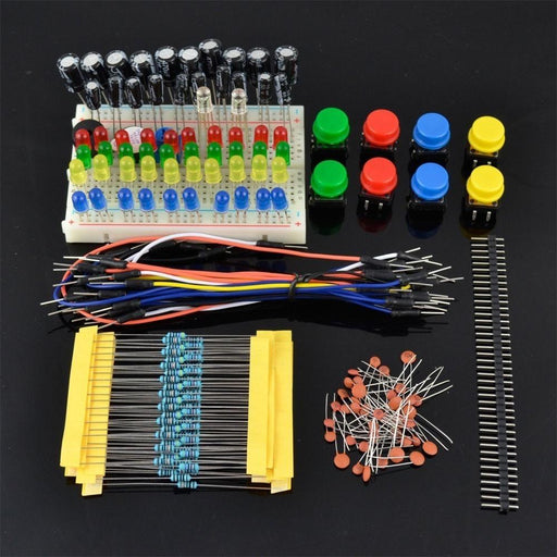 Dieses Kit enthält eine Vielzahl an Bauelementen sowie Prototyping-Zubehör, um einfache Schaltungen mit einem Arduino oder Raspberry Pi zu realisie...