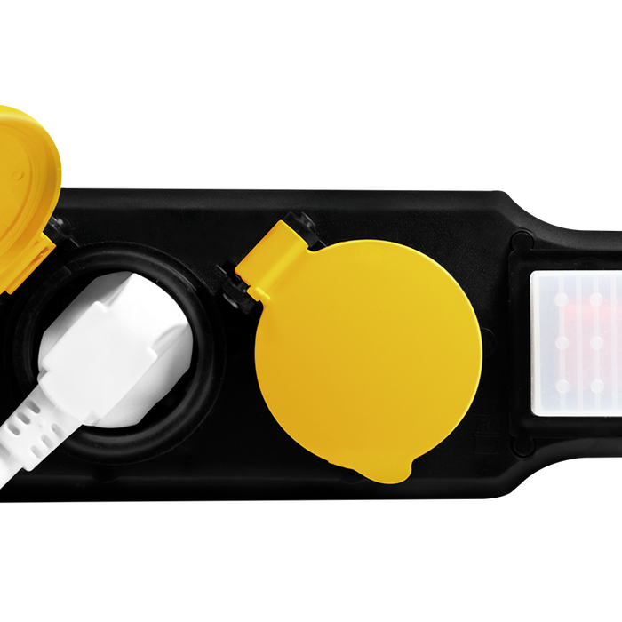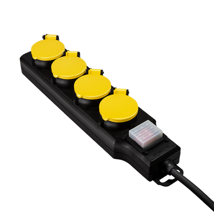- 4 spritzwassergeschützte Schutzkontakt-Steckdosen mit Klappdeckel